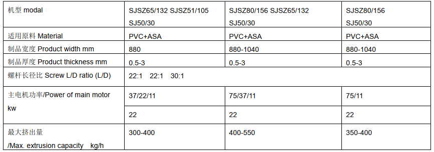PVC琉璃瓦生產(chǎn)線主要技術(shù)參數(shù):