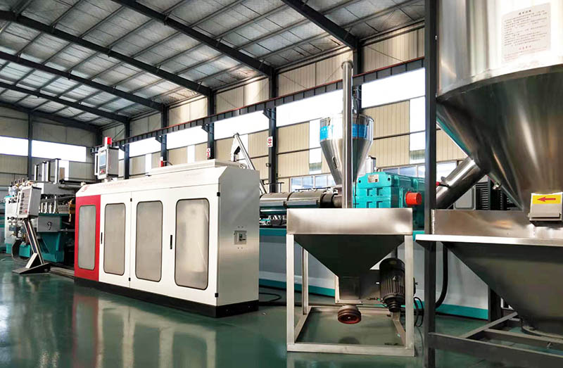 1. 擠出機(jī):螺桿的特殊設(shè)計(jì),先進(jìn)的溫控系統(tǒng), 確保原料的塑化效果良好及高產(chǎn)量穩(wěn)定擠出。