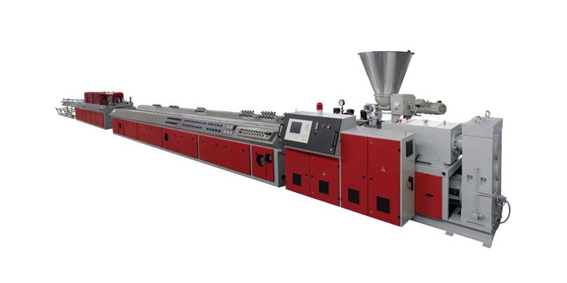 木塑擠出生產(chǎn)線:采用特殊設(shè)計(jì)的螺桿機(jī)筒、模具及擠出機(jī)加工生產(chǎn)工藝生產(chǎn)木塑產(chǎn)品。公司產(chǎn)品系列:木塑一步法厚板設(shè)備;木塑一步法異型材設(shè)備;木塑一步法裝飾材設(shè)備;木塑造粒設(shè)備;各種木塑模具。擠出機(jī)單機(jī)兩級混合直接擠出,也可造粒后兩步法擠出,省電省空間,具有產(chǎn)量高,擠出壓力穩(wěn)定,預(yù)熱加料機(jī)置于主機(jī)頂部,先抽出大部分木粉中殘留的水份,使主機(jī)加料段更加充實(shí);塑化混煉效果好等特點(diǎn)。優(yōu)化的螺桿設(shè)計(jì)使用使剪切小,不易剪斷木質(zhì)纖維,能使物料在機(jī)內(nèi)停留時(shí)間均勻。螺桿機(jī)筒采用雙金屬處理,耐磨耐腐蝕,使用壽命大大延長。該生產(chǎn)線能生產(chǎn)PE、PP或PVC木塑異型材制品,主要用于托盤,包裝箱板,地板,戶外裝飾材料等,用途十分廣泛。木粉及植物纖維添加量高(最高可達(dá)50-75%);設(shè)備適應(yīng)能力強(qiáng),可同時(shí)加工PP、PE、ABS、PS等。