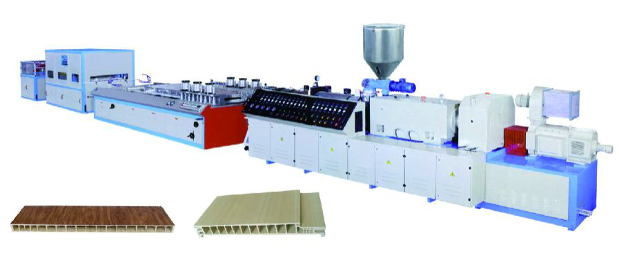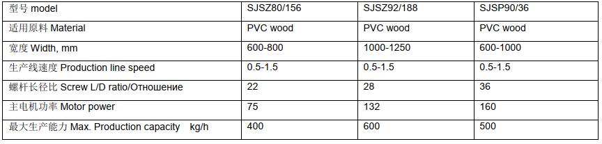 PVC木塑共擠發(fā)泡寬幅門板生產(chǎn)線采用 SJSZ80 錐形雙螺桿擠出機或 SJSP90 平行雙螺桿擠出機。