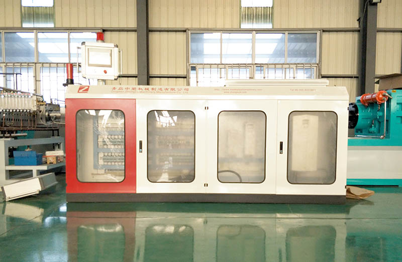 1. 擠出機(jī):螺桿的特殊設(shè)計(jì),先進(jìn)的溫控系統(tǒng), 確保原料的塑化效果良好及高產(chǎn)量穩(wěn)定擠出。